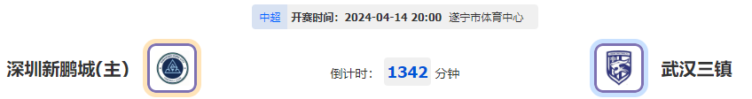 北京时间04月14日20:00,中超第6轮赛事深圳新鹏城vs武汉三镇,深圳新鹏城作为升班马表现不俗,他们能否在此役捍卫主场继续出击?武汉三镇境况越发地惨淡,与对手相比正好相反,此番挑战是否已做好准备?