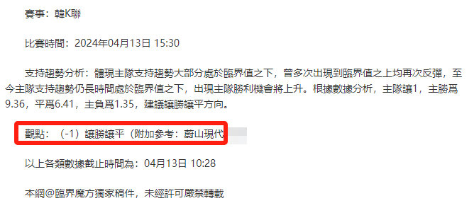 【解鎖內容為以上賽事支持趨勢預測圖展示,以及根據分析預測圖進行相對低機率方向觀點判斷。解鎖內容僅代表個人知識領域觀點,與本網站無關】