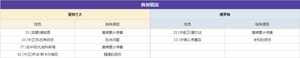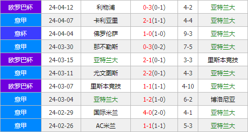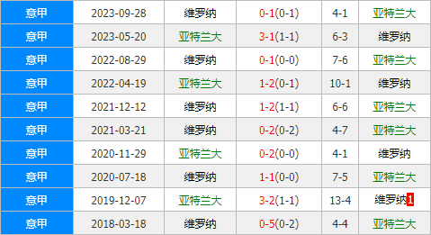 而结合到对赛双方在近年来的近10次交锋也能发现呀,亚特兰大在面对维罗纳的时候能够取得7胜1平2负的优势战绩,其中就包括在本赛季联赛中首回合较量在客场1-0小胜对手的表现,球队其实在心理层面上还是要处于一个相对明显的上风~