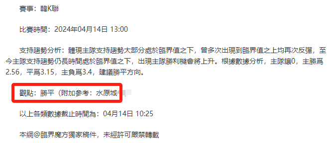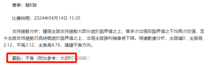 【解鎖內容為以上賽事支持趨勢預測圖展示,以及根據分析預測圖進行相對低機率方向觀點判斷。解鎖內容僅代表個人知識領域觀點,與本網站無關】