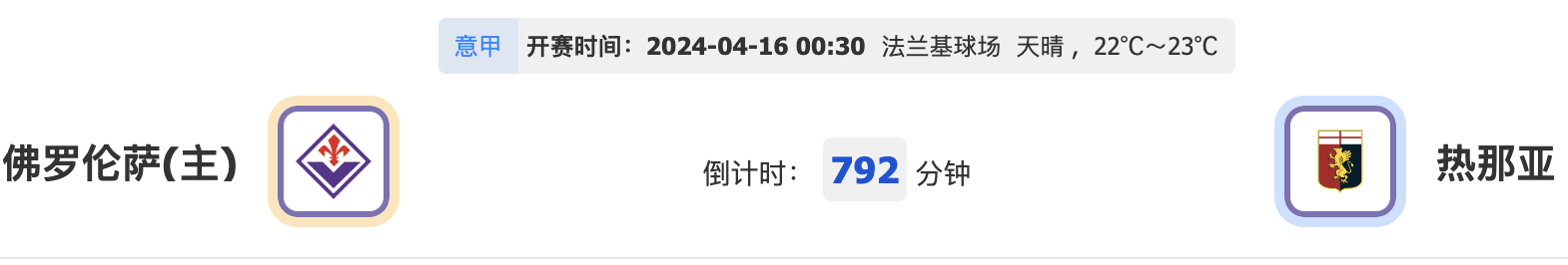 北京时间4月16日凌晨00:30,意甲第32轮的比赛将会继续展开,佛罗伦萨队将会在主场迎来热那亚队的挑战,紫百合队主场能否收获3分?