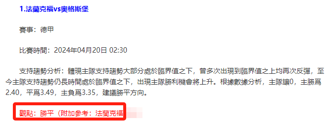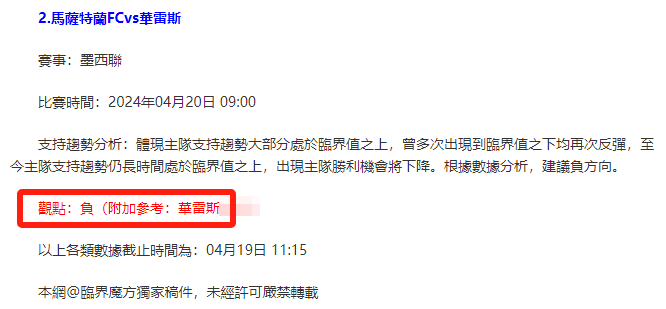 【解鎖內容為以上賽事支持趨勢預測圖展示,以及根據分析預測圖進行相對低機率方向觀點判斷。解鎖內容僅代表個人知識領域觀點,與本網站無關】