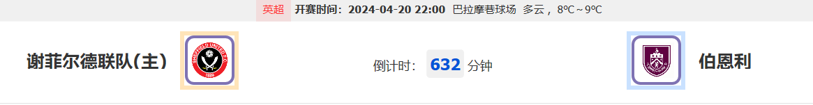 北京时间4月20日22:00 谢菲尔德联队战伯恩利。谢菲尔德联队上场面对布伦特福德,谢菲尔德联队是0-2负对手,伯恩利上场1-1战平布莱顿,此次对战,走势会怎样?