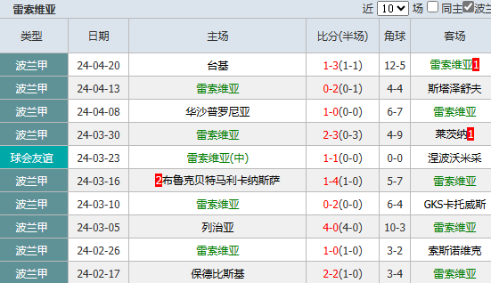 2、与客队相比,雷索维亚在实力上也毫无优势可言,近两个赛季与克拉科夫交锋,他们三战皆败。