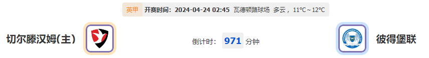 北京时间2024年4月24日02:45,此役是切尔滕汉姆与彼得堡联今年的第一场对决,切尔滕汉姆目前状态仍然惨淡,此役能否重新出击捍卫主场?而彼得堡联状态领先不少,此番客访定然不失抢胜战意,他们又能否做到反客为主?