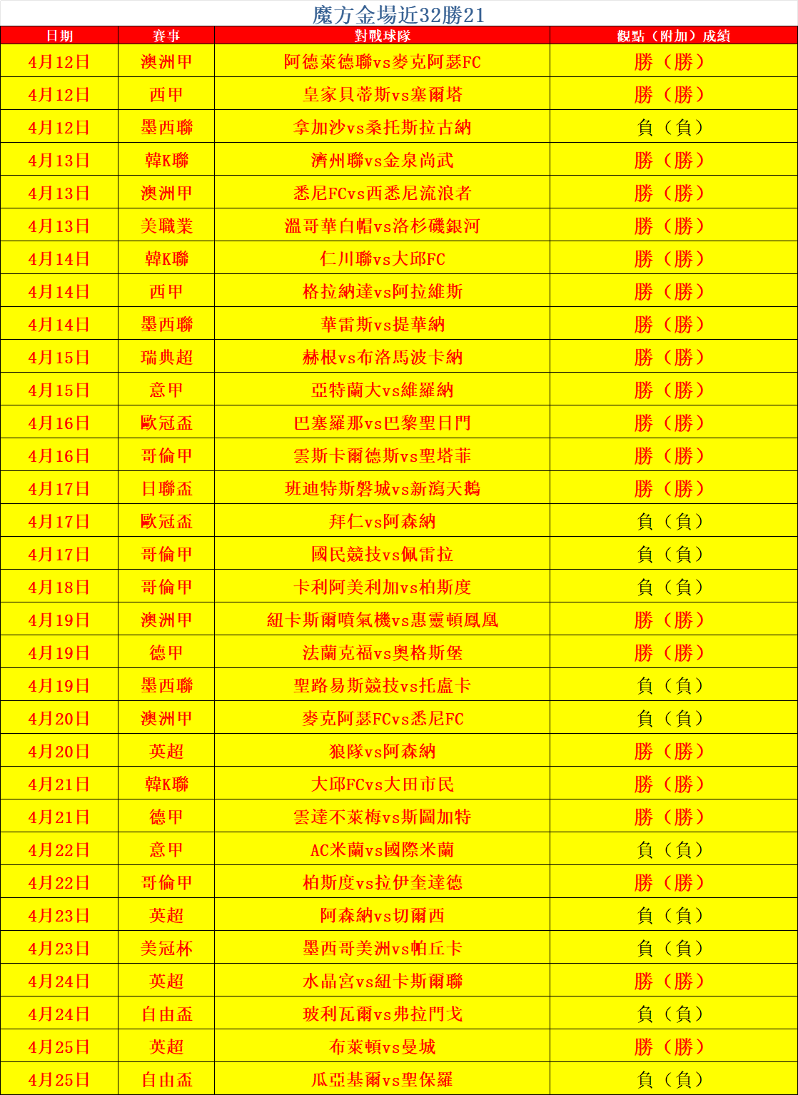 魔方昨天歐賽金場拿下,保持不敗,整體勝負各半。金場近32勝21。接下來魔方將會不斷努力務求精益求精!今日針對五大聯賽以及墨西聯進行深研。
