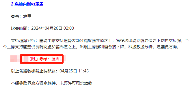 【解鎖內容為以上賽事支持趨勢預測圖展示,以及根據分析預測圖進行相對低機率方向觀點判斷。解鎖內容僅代表個人知識領域觀點,與本網站無關】