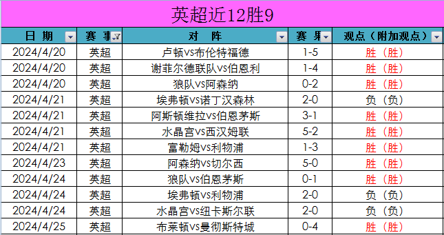 昨日澳洲甲赛事, 布里斯班狮吼主场3-4不敌阿德莱德联,进球数符合笔者预期,周末到来,继续精选英超,英超赛事近12胜9战绩。