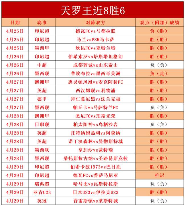 我是天罗王,从事体育媒体相关工作已有20余年,有着多年丰富的实战经验,专研心理学,概率学,读心术多年,以理性与逆向思维相结合的概念为导向,做到精准结果判断。