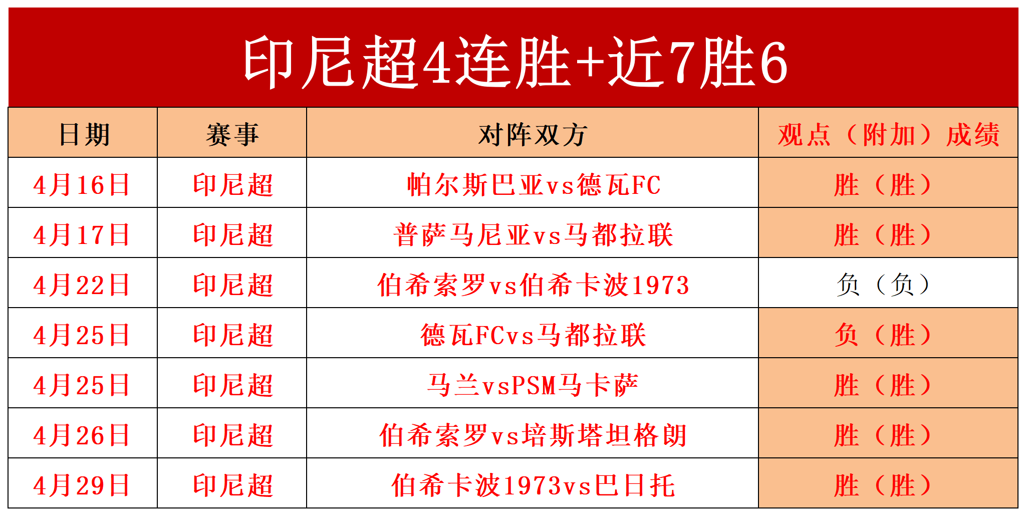 昨天拿下双胜,状态依旧火热,昨天的印尼超继续取胜,印尼超近期取得了7胜6的佳绩,目前是4连胜,除此,笔者近期各项高胜率的赛事也不少,墨西联近6胜5,墨西甲5连胜,五大联赛近期取得6连胜,这并非偶然,笔者分享的赛事涵盖范围广,有欧洲主流联赛,美洲主流联赛,亚系热门赛事,各类杯赛等等,笔者推.荐的方式有胜负和进球数建议,对于各种赛事笔者会反复琢磨数据的变化,全方位研究赛事的动向,以达到方向的顶值,今天的几场重点赛事经过了昨晚一夜的反复测试和研究,信心很足,切勿错过。