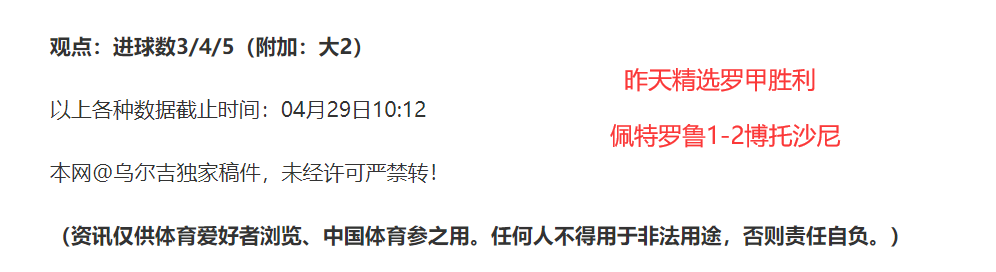 (温馨提示:观点回顾为已完场赛事的统计,并不能代表未来的观点预测结果走势,观点仅为其个人意见,与平.台无关。资讯仅供体育爱好者浏览,并不构成购.彩建议,任何人不得用于非法用途,请广大用户理性消费。)