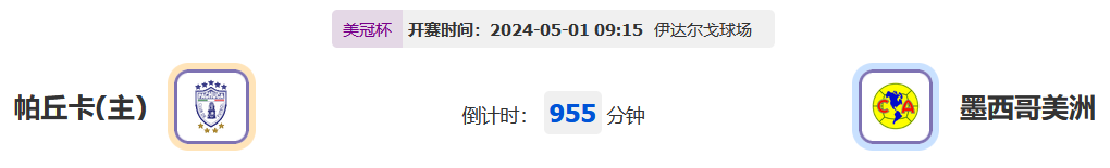 北京时间5月1日09时15分,美冠杯2024届准决赛第二回合比赛,帕丘卡vs墨西哥美洲,双方在时候回合交锋里帕丘卡以1:1的比分全身而退捍卫了赛点,本轮双方主客互易之后帕丘卡能否把握主场优势击败对手?我们一起拭目以待!