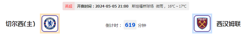 北京时间2024年5月5日21:00,2023-2024 英格兰超级联赛,切尔西vs西汉姆联,此役是英超赛季第36轮的较量,切尔西上轮联赛主场2-0零封托特纳姆热刺,连续5个主场取得4胜1平不败战绩,此役继续坐镇主场迎战西汉姆联,两队如何对峙?下面由本作者为大家做详细阐述。