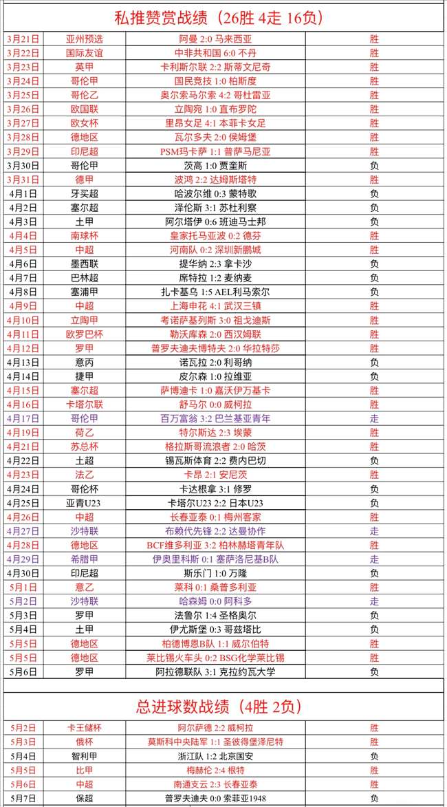 全力冲击75%胜率,这是我的目标!周日解锁文章2场,结果1胜1负,意甲完美全胜,保超判断错误,解锁文章近54负19,还需努力!私推总进球数1场,没有打出,私推总进球数近6负2,状态稳定!私推赞赏1场没有打出,私推赞赏近46负16,成绩还行!