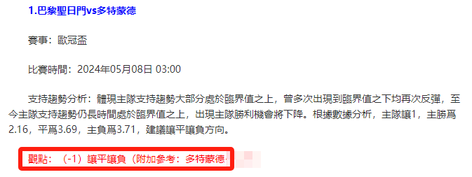 【解鎖內容為以上賽事支持趨勢預測圖展示,以及根據分析預測圖進行相對低機率方向觀點判斷。解鎖內容僅代表個人知識領域觀點,與本網站無關】