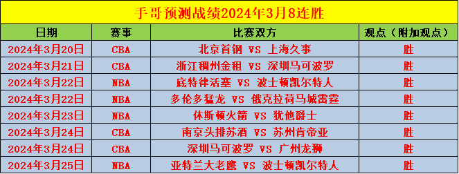 赛事回顾:NBA开赛以来作者一直深入其中,前段时间NBA曾取得6连胜,目前取得5胜4的成绩。作者今日继续分析主力赛事,NBA再续火热状态,演算优越成绩再分析精彩赛事!运用大量篮球知识演算赛事分享给大家,作者近期状态火热,此前CBA11连胜,菲MPBL11连胜,以及过往多个月份取得9连胜足以证明实力!专业的赛事分析有目共睹!深度调整过后将奉上精彩的赛事情报!紧随作者的步伐,收获胜利并非难事!