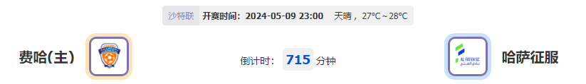北京时间2024年05月09日23:00,此役是费哈与哈萨征服今年的第一场对决,费哈如今在主场不失优势,此役能否拿下胜绩捍卫主场?而哈萨征服延续此前不稳的状态,此番客访定然不失抢分战意,他们又能否做到全身而退?