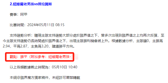 【解鎖內容為以上賽事支持趨勢預測圖展示,以及根據分析預測圖進行相對低機率方向觀點判斷。解鎖內容僅代表個人知識領域觀點,與本網站無關】