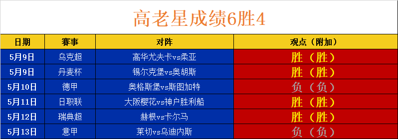 (温馨提示:观点回顾为已完场赛事的统计,并不能代表未来的观点预测结果走势,观点仅为其个人意见,与平.台无关。资讯仅供体育爱好者浏览,并不构成购.彩建议,任何人不得用于非法用途,请广大用户理性消费。)