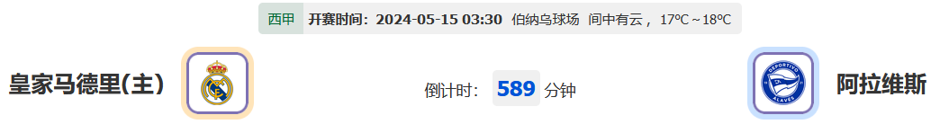 北京时间5月15日03:30,西甲联赛2023-2024赛季第36轮比赛,皇家马德里vs阿拉维斯,主队赛季已经提前多轮比赛锁定冠军,欧冠赛程也是再一次挺进了欧冠杯的决赛圈,多点开花的他们此战能否轻易捍卫主场?作客的阿拉维斯在重返西甲之后迅速占据了联赛的中游位置,已经提前完成保级任务的他们此役有机会以下伐上吗?让我们一起关注!