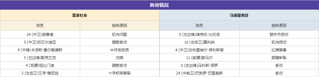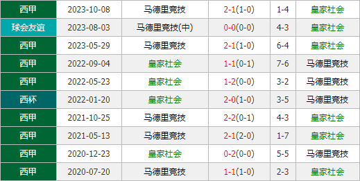 不过结合对赛双方在近年来的近10次交锋记录也可发现,皇家社会在面对马竞的时候只拿下了1胜4平5负的交手记录,其中包括在本赛季的首回合较量中客场1-2不敌马竞的表现,球队或许会在心理层面上处于一个明显的下风?