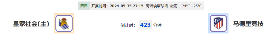 北京时间5月25日的晚上22点15分,西甲联赛的第38轮赛事“收官之战”即将继续展开角逐!——传统豪门马德里竞技将会作客去到阿诺埃塔球场对阵劲旅皇家社会!当前正值两连胜的皇家社会能否捍卫主场?还是在上轮被终结连胜之后,马竞能够在作客重返胜轨?