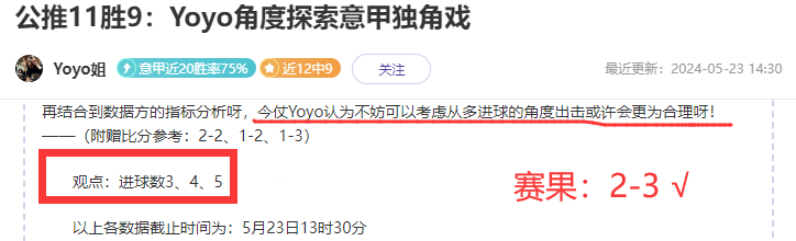 前天公推德乙波鸿直接失利,不过近12胜9的表现尚算不错。而超级重点意甲方案多进球顺利拿下,表现重返胜轨!——今天核心赛事已确认,信心依旧,各位可点击一下【打赏】按钮给予鼓励,轻松获取当天新鲜信心专场哦!多一份参考离喜悦再近一步,Yoyo将继续率粉粉们继续前行~