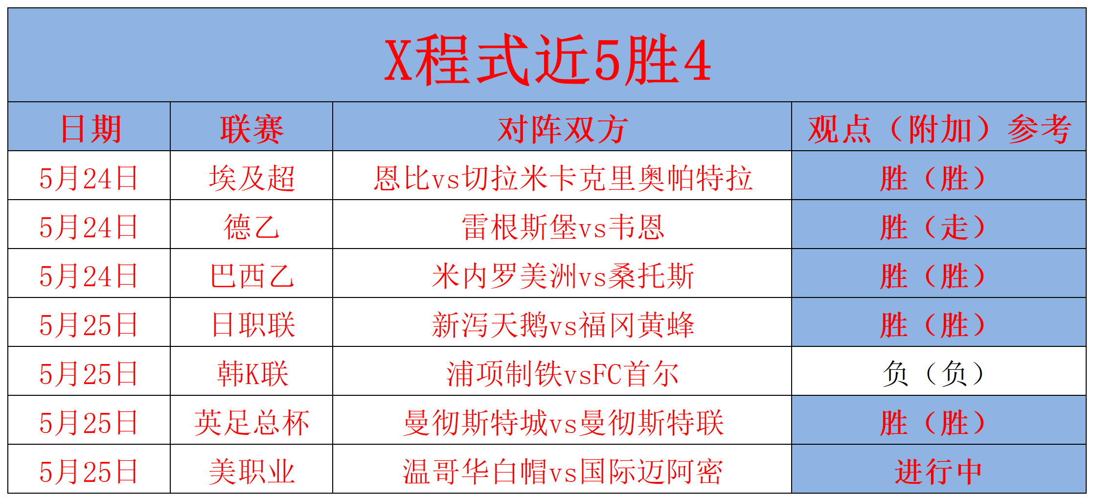昨天第一场日职联客队方向打出,第二场韩K联赛果有偏差,第三场英足总杯客队方向打出,剩余一场美职业仍在进行,近期取得5胜4的佳绩(不含走的),笔者状态正佳,今天我们继续追击。