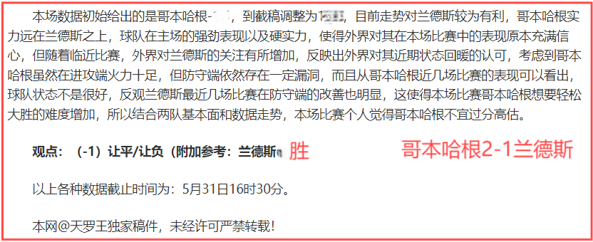 (温馨提示:观点回顾为已完场赛事的统计,并不能代表未来的观点预测结果走势,观点仅为其个人意见,与平.台无关。资讯仅供体育爱好者浏览,并不构成购.彩建议,任何人不得用于非法用途,请广大用户理性消费。)