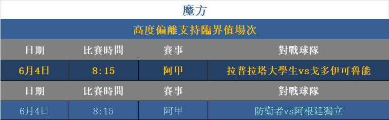 利用「魔方關系」進行支持趨勢預測分析,超越臨界數值之上可視為低機率方向,此方式對比賽方向分析有顯著幫助效果。