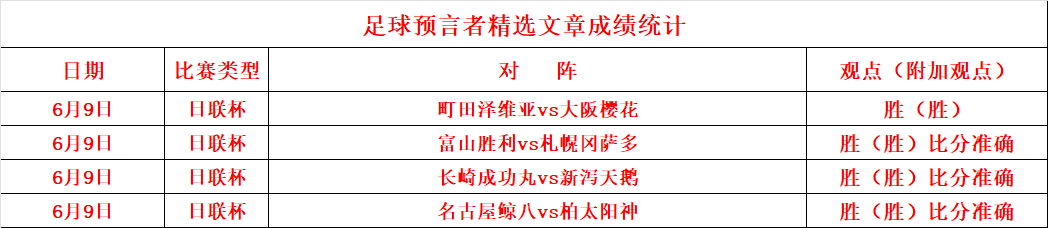 昨天精选文章分享4场日联杯的比赛,取得4连胜的成绩之余,还带来了3场比分拿捏的表现,状态非常出色;长期关注还是可以得到相当可观的收获;长期稳定的发挥才是笔者追求的目标;今天会再接再厉为大家挑选信心场次,足球预言者会继续精心挑选信心赛事给大家,今天信心满满,继续为大家保驾护。