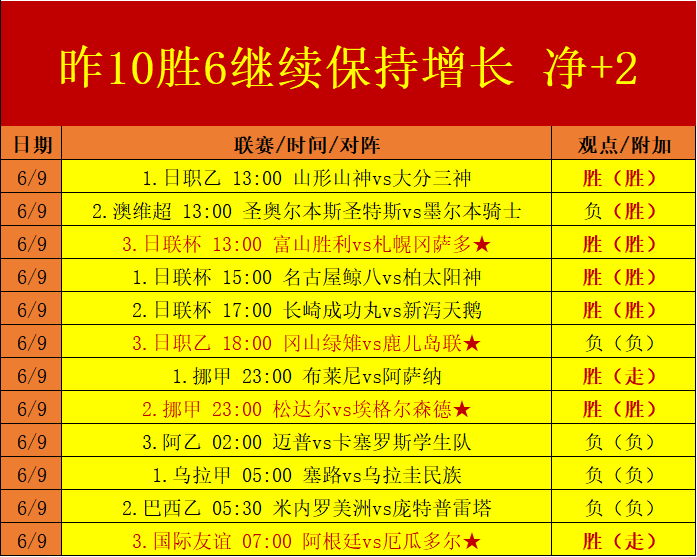 在过去的半年时间里,笔者交出了连续24个胜利旬计划的增长表现,数据击中能力整体稳定且优秀,当中出现微弱的阶段数据调整属于合理范围,总体数据净增依然体现出了数据模块对主流赛程的积极调整能力,此前的5月增长进程虽然进度有所放缓但整体仍以稳定的增长表现交出正向发挥,继续保持对数据模块的信任和追踪,才是真正能够收获正向增长的关键动作。本日继续精选值得关注的焦点赛程进行组合冲击,争取与大家携手扩大胜利优势迈向笔者的第25个连续胜利旬计划!