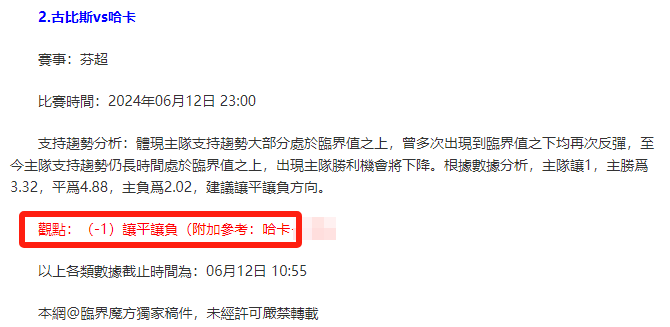 【解鎖內容為以上賽事支持趨勢預測圖展示,以及根據分析預測圖進行相對低機率方向觀點判斷。解鎖內容僅代表個人知識領域觀點,與本網站無關】