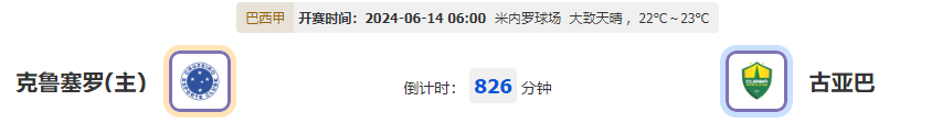 北京时间2024年6月14日06:00,巴西甲级联赛迎来了第8轮的一场焦点对决,克鲁塞罗将在主场迎战古亚巴。这场比赛对克鲁塞罗来说至关重要,球队希望能够在主场延续强势表现,而古亚巴则希望能够在客场取得宝贵的积分,提升当前的联赛排名。