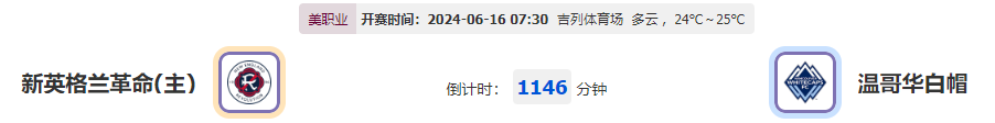 北京时间2024年06月16日 07时30分,美职业联赛即将进行一场激烈对决,新英格兰革命将在主场迎战温哥华白帽,让我们共同期待这场精彩的比赛!
