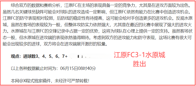 大家好!我是X程式,涉及足球领域10余载,对于各种联赛的性质具有丰富的分析经验,有着近5年的各类主流联赛的欧亚趋势数据库,擅长基本面的捕捉,对于各界走势变化的对比有独特的见解。