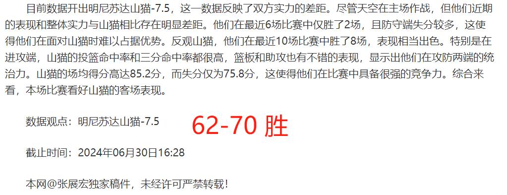 往期成绩回顾:近期为大家分享的WNBA赛事山猫顺利战胜天空。作者在过去多场比赛都展现出了精选资讯的实力,经过多番的深入研究赛事资讯,在多维度拆解后比赛胜.率得到了大幅度的提高,新的一期赛事为大家分享一场WNBA赛事水银vs太阳,敬请期待。
