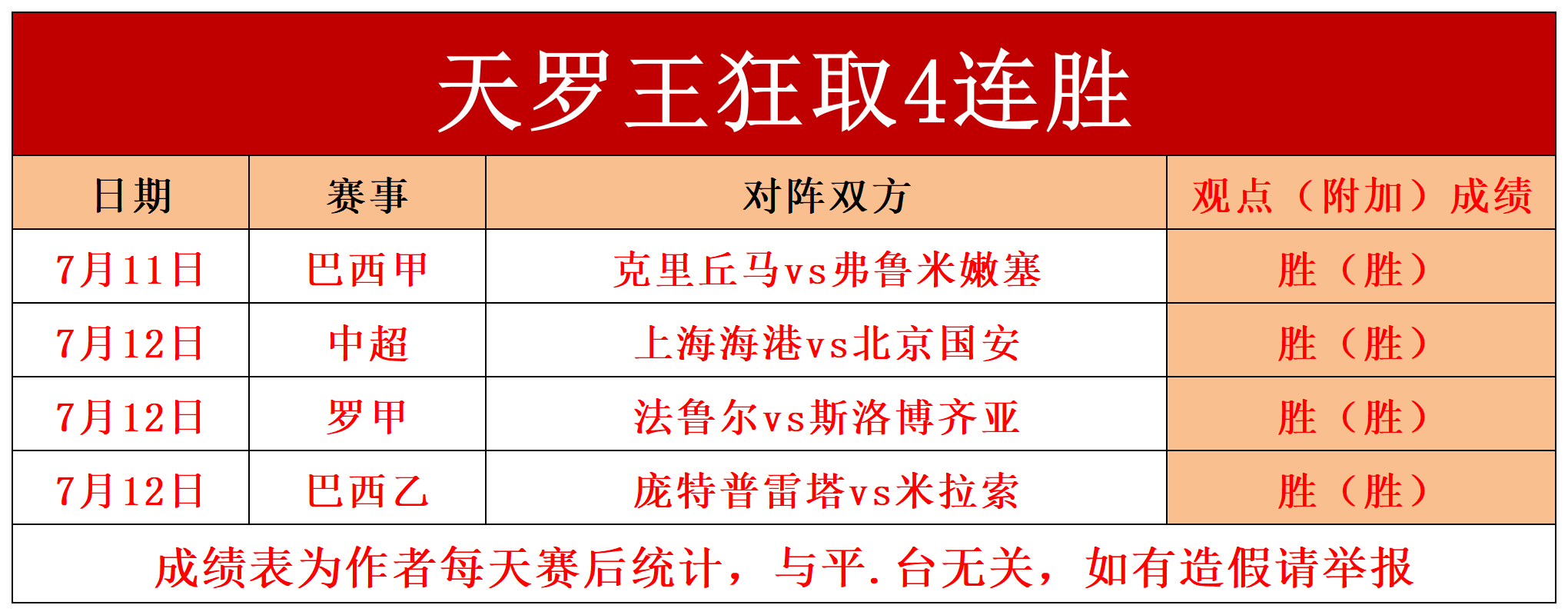 《战绩回顾》昨天状态再度飙升,6场比赛拿下了3场,其余3场还没结束,近期狂取4连胜,状态火热势不可挡,今天的赛事继续有超强的信心。接下来重点分析一场中超的比赛,中超近期取得了4连胜的佳绩,今天继续冲连胜!