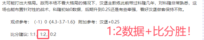 解锁内容:数据分析+比赛建议(观点+附加)+比分建议