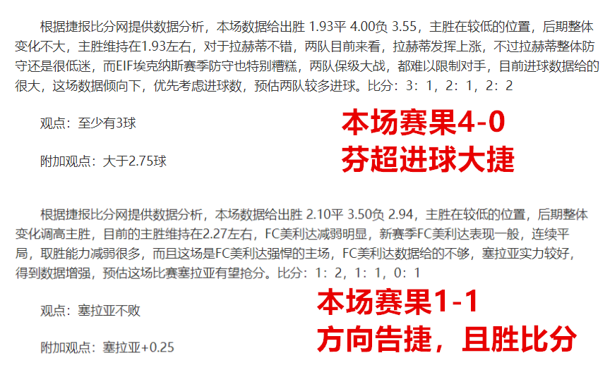 【猎人回顾】昨日双胜+胜比分!刚墨甲打平,方向告捷,且胜比分,解锁最多的芬超,双方打出4-0,单队也能够轰出较多进球,进球成功告捷!周六赛事很多,挑选最佳单,力争大捷!