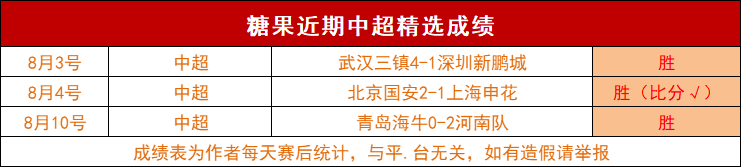 战绩回顾:昨天大获全胜!3场精选全部告捷!赞赏的德乙告捷!近期赞赏7胜6!公推的巴西乙告捷!近期公推21胜20!今天赛事依旧不错,精选带来一场中超焦点战,冲击4连胜!欢迎大家打赏或包周支持,我们按计划稳定取胜!