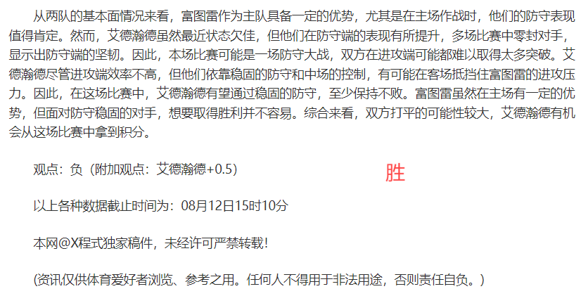 《战绩回顾讲述》昨天丹麦超和埃及超成功拿下,表现不错。丹麦超奥尔堡以3-2击败维堡,奥尔堡方向分析准确;丹麦超埃及超富图雷vs艾德瀚德,艾德瀚德以1-1逼平富图雷,艾德瀚德方向分析准确。今天继续高效出击!