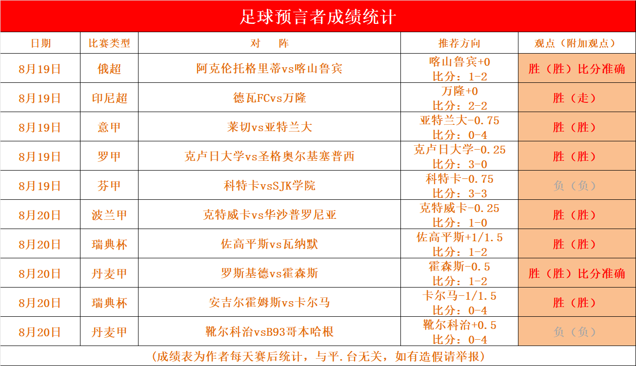 【成绩回顾】昨天表现非常出色,分享5场比赛给大伙,取得5胜4的表现,而赞赏方面同样拿下胜利,赞赏迎来了2连胜,而且比分也是准确拿捏,今天再次起航,锁定信心场次;长期稳定的发挥才是笔者追求的目标;今天会再接再厉为大家挑选信心场次,足球预言者会继续精心挑选信心赛事给大家,今天信心满满,继续为大家保驾护。