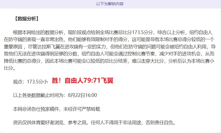 以下解锁内容包括:两队详细的战况分析+两队详细的数据分析+数据观点