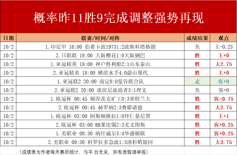 成绩优势汇总:昨日交出的12场比赛拿下9胜1走的优秀成绩,笔者完成数据调整强势再现!捉住优势状态继续抽取精选赛程组合出击扩大优势!