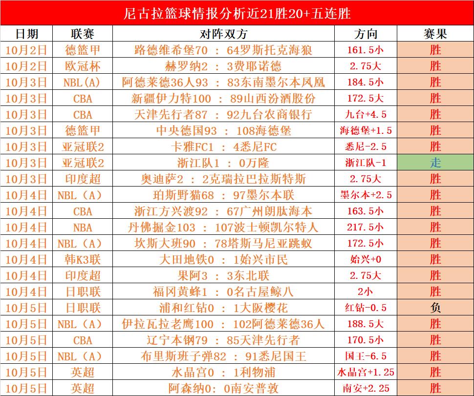【成绩回顾】近拿下21胜20,昨日篮球全胜,二战NBL、CBA重点比赛保持胜利前进,强项情报解读连胜赛事再次出发,长期解读惊喜不断,精准赛事再出击,此前作者创下4次双位数胜战绩,掌握着一手赛事资深情报,本期继续分享充满奇妙体育赛事,敬请大家持续关注!!