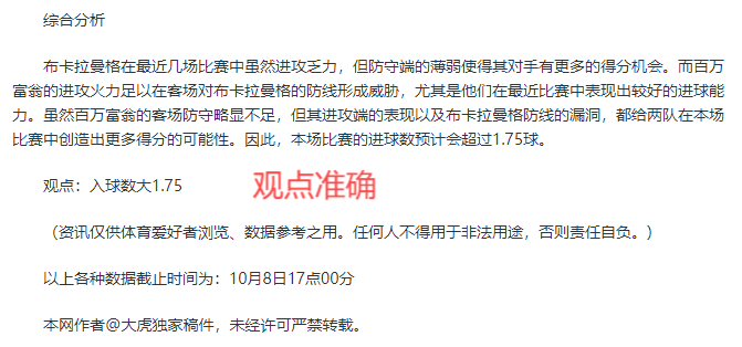 【解锁内容包含双方数据分析、进球数分析、综合分析、比赛建议】