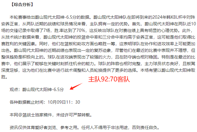 【赛事回顾】昨天菲州长杯和韩KBL杯赛事获胜取胜,作者本场乘风破浪继续前行,所有的战绩不是偶然的幸运所能达到,连胜的结果不是靠侥幸就能得到!让作者充分展现出对各大篮球联赛分析的专业知识及数据统计能力。本期作者利用大数据分析,演算出赛事有利方案!