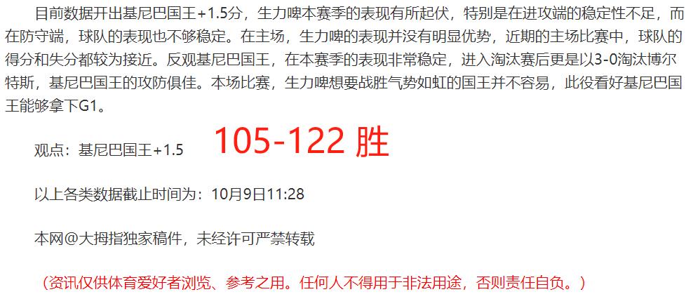 成绩回顾:昨日分享的菲州长杯赛事,基尼巴国王方向顺利取胜。以下为大家分享一场NBL(A)赛事,坎斯大班vs野猫,敬请期待!