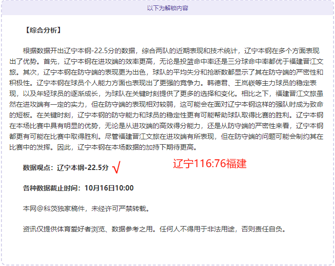 解锁内容包括:双方近期数据走势分析+综合分析+数据观点
